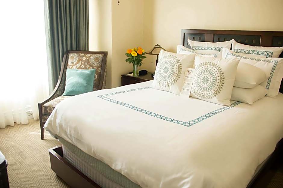 This suite, known as the Corporate Suite, includes a flat-screen LCD TV with film channels, a mini-refrigerator, a personal safe, a ceiling fan and an umbrella for guest use.